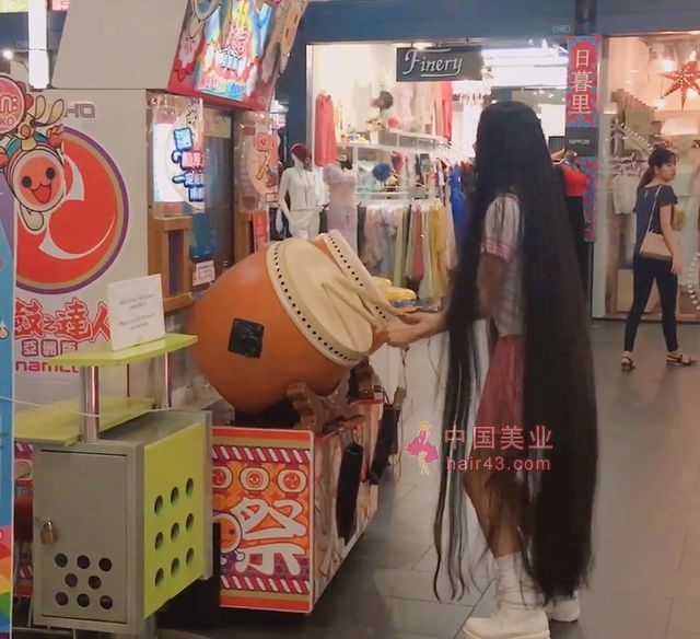 美女理发店自剪1.3米及地长发