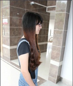 剪去惠州妹子的栗色卷