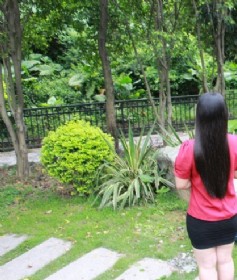 草地上剪去妹子齐腰黑发-发之美284#