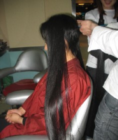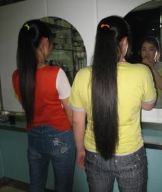 两位女孩同时剪长秀发