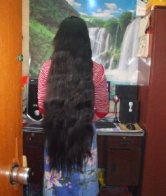 22岁女孩乌黑及臀长发