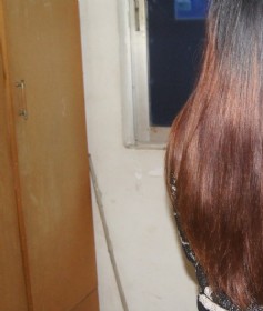 美女在办公室剪下60厘米彩发-深圳mm419#