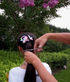 小女孩把辫子剪了