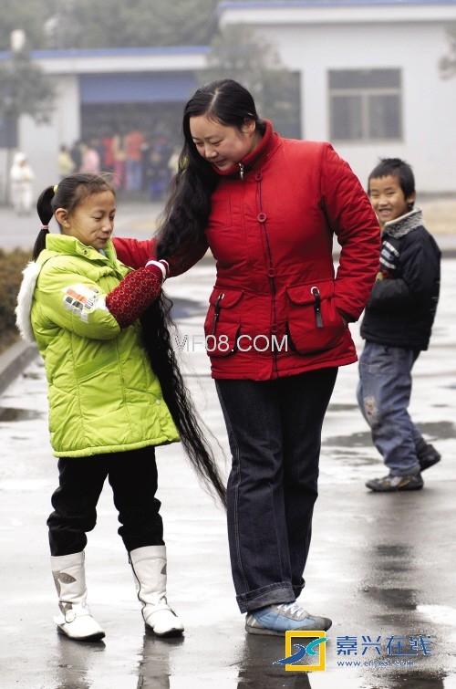这么长的头发,洗起来真费力,“就像洗衣服一样,从上往下要一节节洗,”陈娟说,由于头发太长了,容易打结,梳头就得非常小心。在冬天,一个星期洗一次头,在夏天,两三天要洗一次头。学校的许多老师并不知道陈娟有这么长的头发,她习惯把头发盘起来,放在帽子里,这样工作起来方便,又不引人注目。