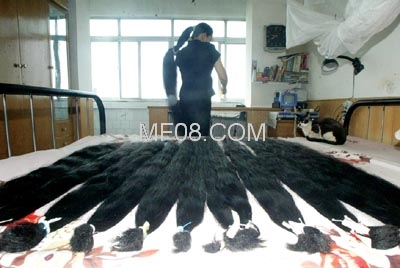 记者在张玉华的家中见到了那14捆头发,按时间排列,头发长度也一年比一年长,将整张双人床铺满。年限最早的1993年的头发也长达1米左右,最近的2006年的头发也有1.65米。张玉华指着1996年那捆头发说,正因为那年发梢被火烧了,才比前几年的头发明显短一块。