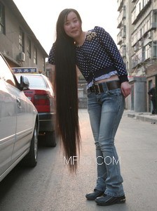 昨日,记者骑车从裕华路经过,突然被便道上一名女孩的长发所吸引。女孩在脑后简单束了一个马尾,头发虽被风吹得有些乱,但仍可以垂到小腿位置。