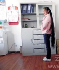2月17日中午,在楚雄市某修理厂办公室,记者见到了长发的主人,21岁的大理姑娘小阮。身高约1.6米的小阮,长得很漂亮,长头发自头顶垂到膝盖。她卖头发的理由其实很简单:1.3米的头发很难打理。