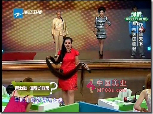 《快乐蓝天下》是浙江卫视2011年重磅推出的大型快乐综艺惊奇秀节目,栏目捕捉现代生活热点,用综艺的手段展示生活中的种种奇妙之处,其概念独树一帜,本期主题是奇妙见面会,请来了天津知名长发女冯婉和安徽知名长发女夏宽蕾助阵,两位长发女在第五题:"谁戴了假发"出场.