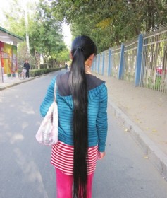 “我的头发拉直了有2.12米长,离吉尼斯世界记录还有些差距。”今年54岁的曹军留头发已经有30年了,听说记者要看看她这长发,曹大姐马上解开发髻。记者仔细地看了一下曹大姐的头发,乌黑的长发超过了她身高一大截,发丝粗而黑亮,发梢也没有枯黄和分叉,尽管曹大姐已是50多岁的人了,却很难在她的头发中发现白发。