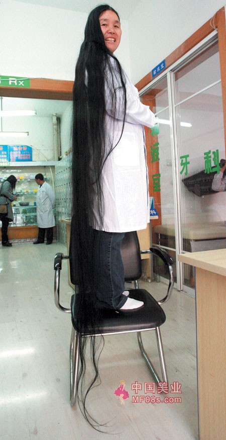 62岁妈妈2米2的长发