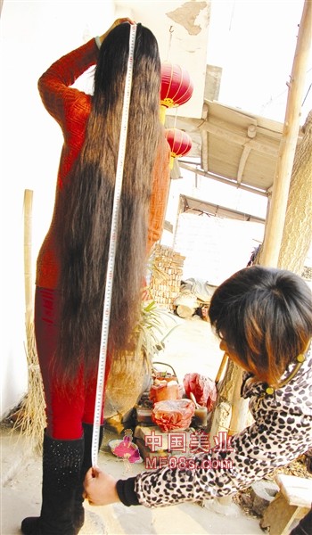 慕名李英一头秀发的人还不在少数,记者采访也是提前一周和她约好的。3月10日,记者登门拜访时,李英在邻居的帮助下,双手向后解开头上的发夹,将已经盘起来的秀发慢慢解开,瞬时一头浓密的青丝如瀑布般撒开,走起路来发丝随风飘动,摇曳生姿。记者用卷尺量了一下,长度达到1.3米,远远超过她的膝盖。用手去摸如瀑般的秀发,那感觉就像广告中所说的,如丝般顺滑。