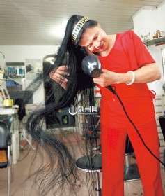 “我退休前是工厂的技术员,这头发从1980年开始留到现在,整整32年没有剪过啦!”说起这头长发的历史,陈阿婆的脸上写满了骄傲。她从小就喜欢留长发,开始蓄发到第十年时,头发已经将近1.5米长了。穿上高跟鞋的她身高约1.63米,那一头长发已经快要贴近地面。此后的20多年,头发一直没怎么长,只长了10厘米左右。记者拿卷尺测了一下,头发的净长将近1.6米。