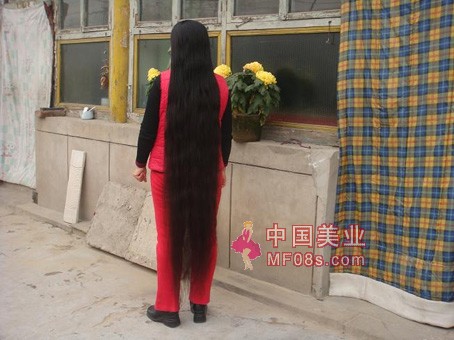 北京顺义赵全营镇48岁农民李玉芬由于不满意别人理发的效果,11年未剪发,如今一头黑发长至脚跟。许多人都瞧上了她的一头秀发,相出高价收购,李玉芬始终没有答应。她的头发现在成了全家人的宝贝,也成了镇里的一道风景。