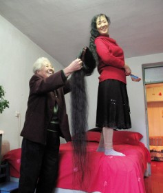 长发飘逸的美女往往是大街上回头率最高的一族,可您见过两米长的长发吗?今天,记者在福州大学西门附近的一间民房中,见到了长发盘在头顶像小山般的张凤珠女士。 张小姐是宁化人,2年前来到福州工作,今年不满30岁,13年前开始留长发。她身高不到一米六……(2009-09-09)
