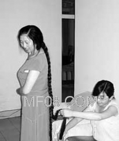 站在椅子上量长发东亚延吉讯 珲春市36岁的朝鲜族女子金顺子身高1.63米,但她的长发却超过2.20米,一位韩国人曾出资5000元买她的头发,但被她拒绝了。金顺子是珲春市某药店总经理,原是安图县二道白河镇人,1993年来到珲春,她从小头发就好……(2007-07-18)