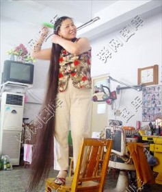 9月3日,记者来到平阴县东阿镇,看到一家“大辫子理发店”。这家理发店的主人是45岁的陈淑芹女士,她的头发长达两米,每次梳头,都要站在凳子上。据介绍,陈淑芹从20多岁就开始留长发,前段时间,有人曾出价3600元买她的头发,被她婉言谢绝了。……(2007-09-14)