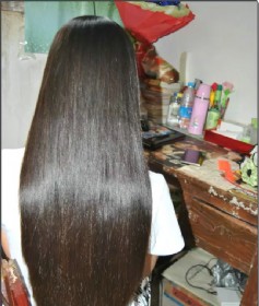 剪下姑娘齐腰油光秀发