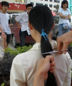 一刀剪下50多厘米秀发