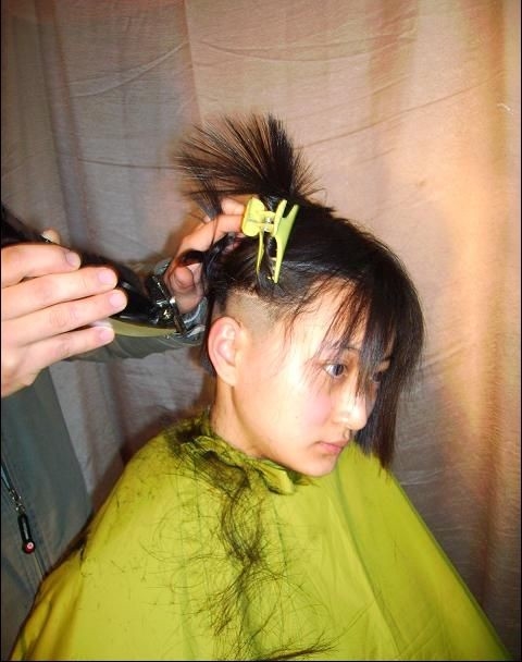 青春姑娘漂亮的盘发和剪发过程-上海ww第