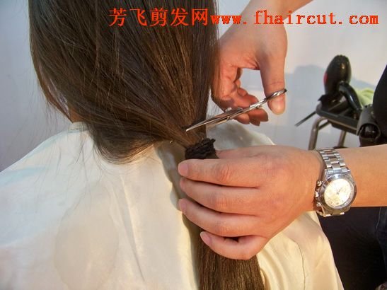 视频:帮长发女剪头发