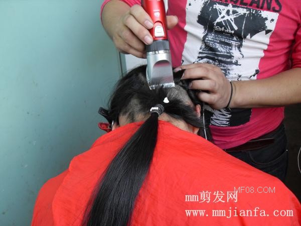 视频:帮长发女剪头发