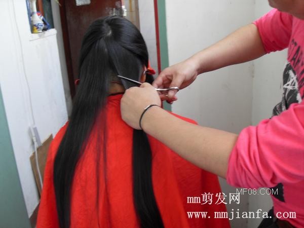 视频:帮长发女剪头发