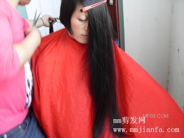 视频:帮长发女剪头发