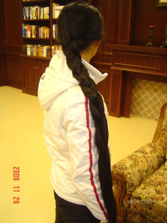 秀发拖到臀部下,剪下发长74公分,很丰厚啊,自然黑色,顺滑光亮柔软,富有弹性,很靓丽,要买此发的朋友与我联系。整个过程是一个完整的审美过程。