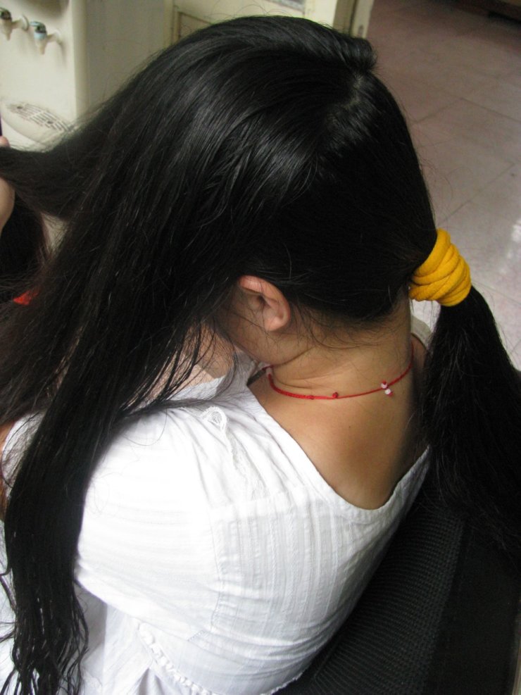 女孩的妈妈狠狠地一刀剪下了她的大辫子