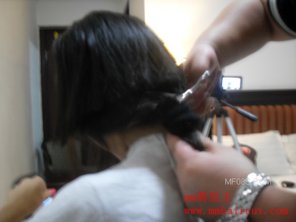 视频:帮长发女剪头发