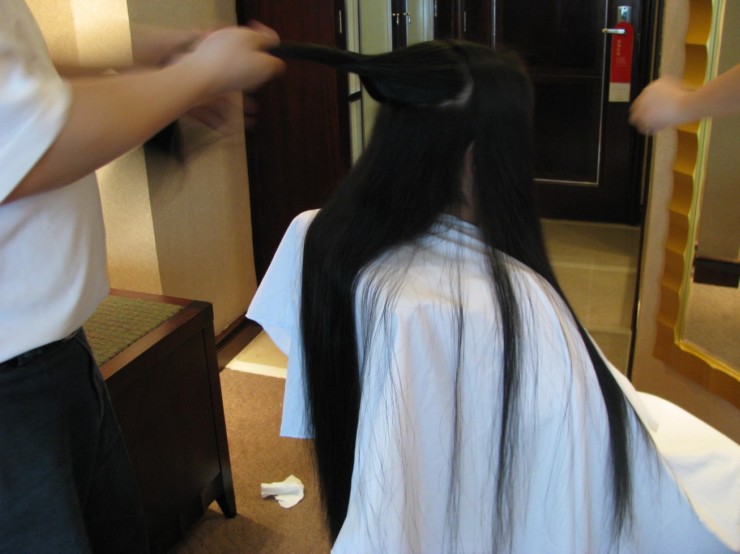 上海妹剪长发过程
