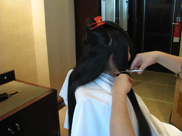 上海妹剪长发过程