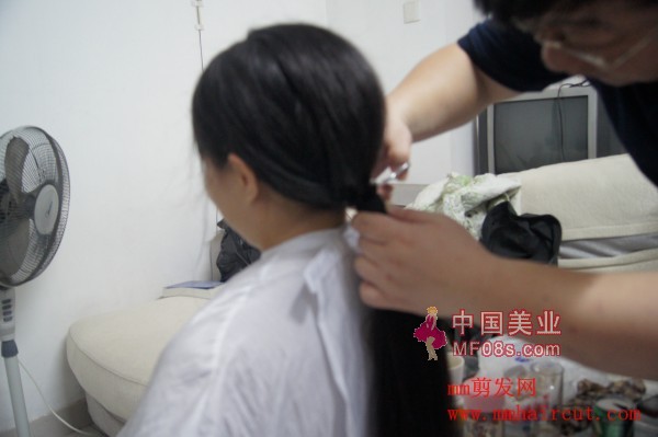上海妹剪长发过程