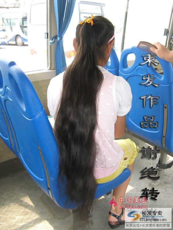 下午去汽车站送人,偶尔遇见这个长头发的小姑娘。更巧的是她就要上初中了,而且要住校,她自己一个人肯定不方便打理这头长发,其母亲正在寻思要给她把长发剪掉。于是,一番沟通之后,就在其母亲负责售票的中巴车上成功剪下这支优质长发--尽管小姑娘本身十分的不愿意。