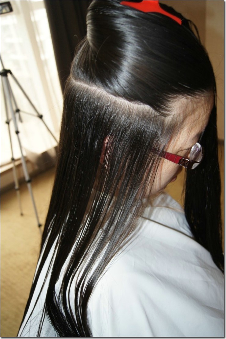 帮刘女士洗剪长发图片