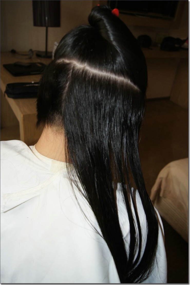 帮刘女士洗剪长发图片