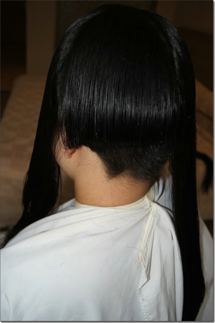 帮刘女士洗剪长发图片