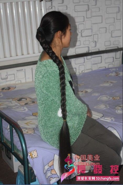 长发女的长发留了多年,散开已经到膝盖以下了,非常柔顺。扎成4束,编成辫子,然后用铅笔串起,足个快速剪下。剪下长度为1.2米,喜欢的朋友联系: QQ758236162 13691418081 mcf2008@126.com