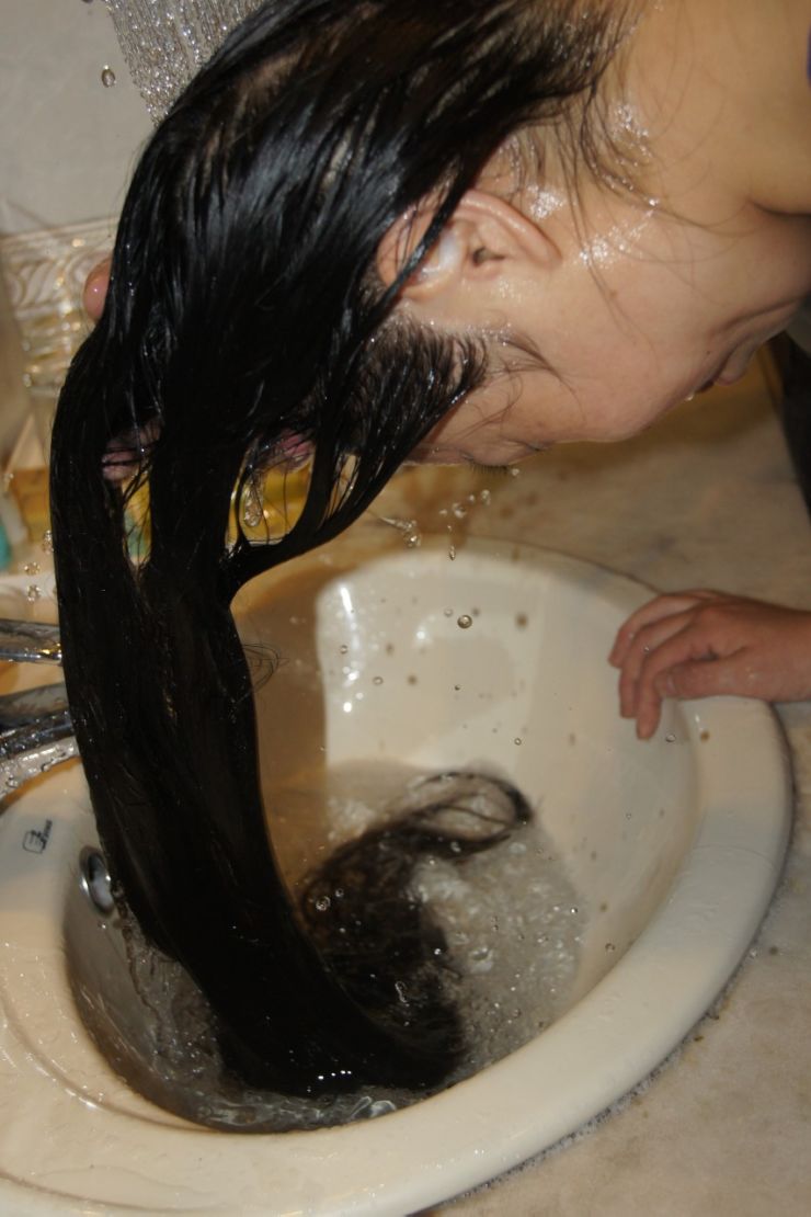 心急母亲拍长发女儿洗澡