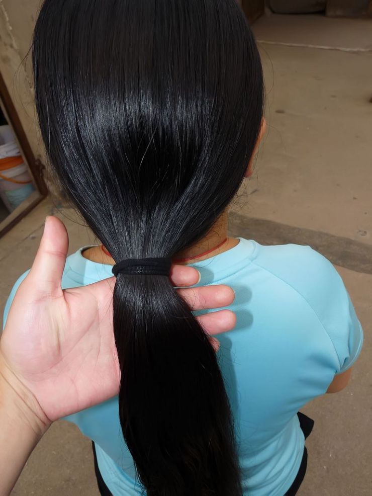 剪年轻妈妈乌黑长发-戈壁落日073#