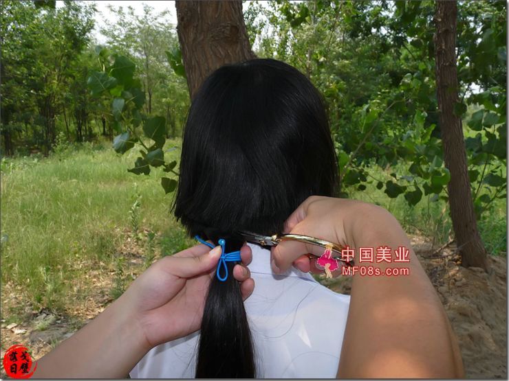 长发姐妹俩一起剪乌黑长发-戈壁落日086#