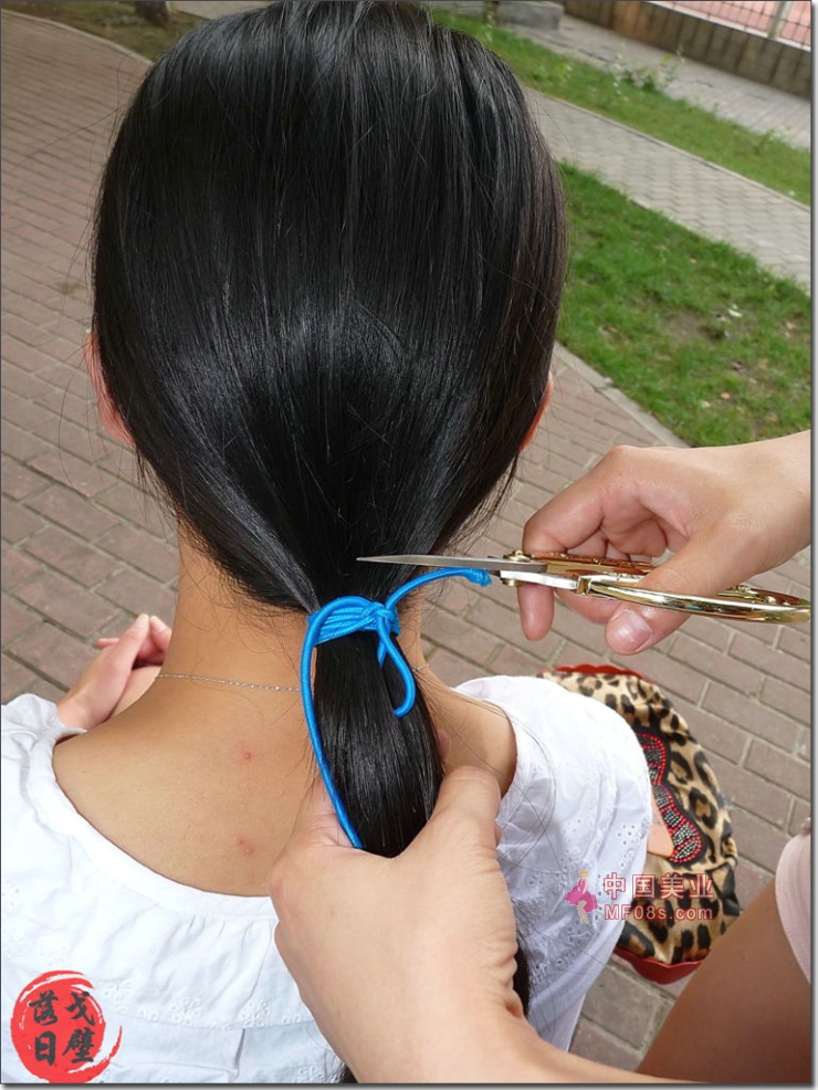 夜晚在公园剪下美女90公分长发