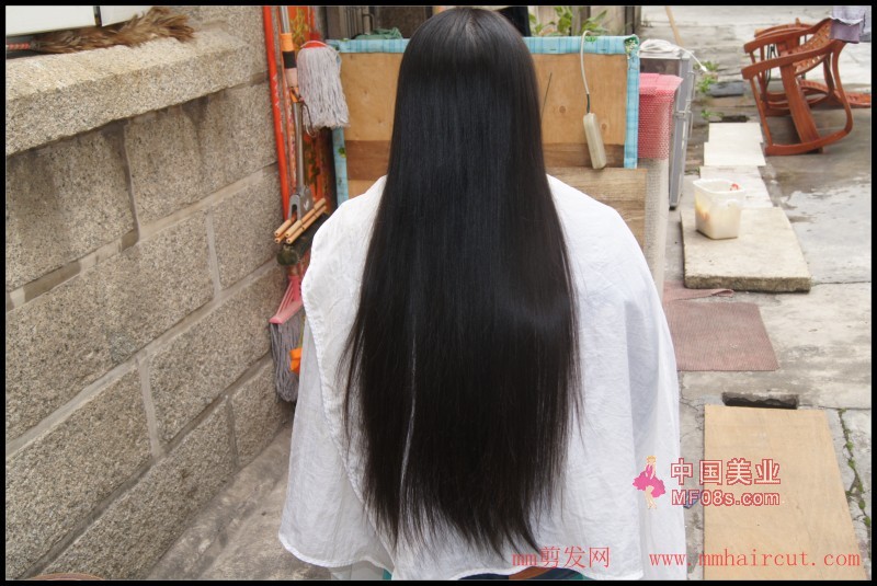 剪下美女上下一样粗的长发