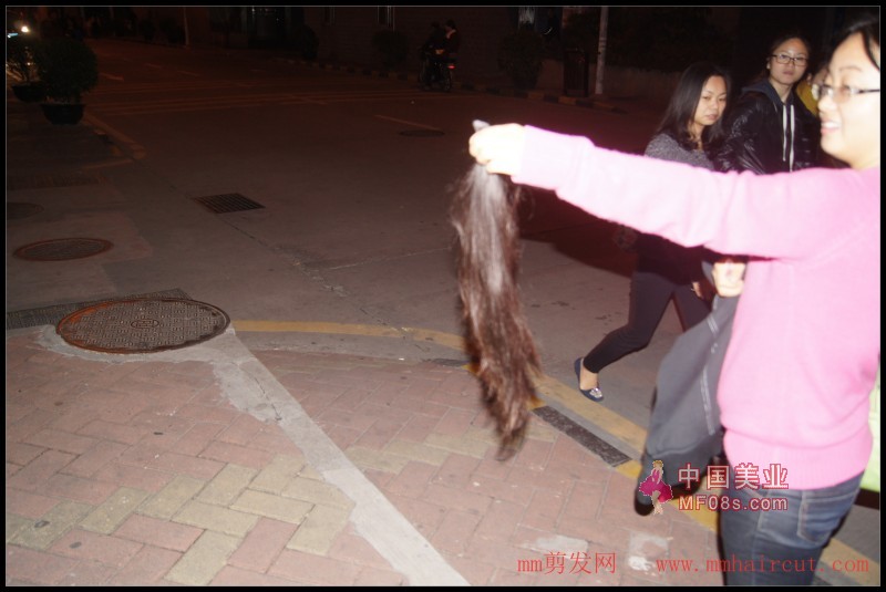 路灯下剪下美女52公分长直发,深圳mm195#(9)