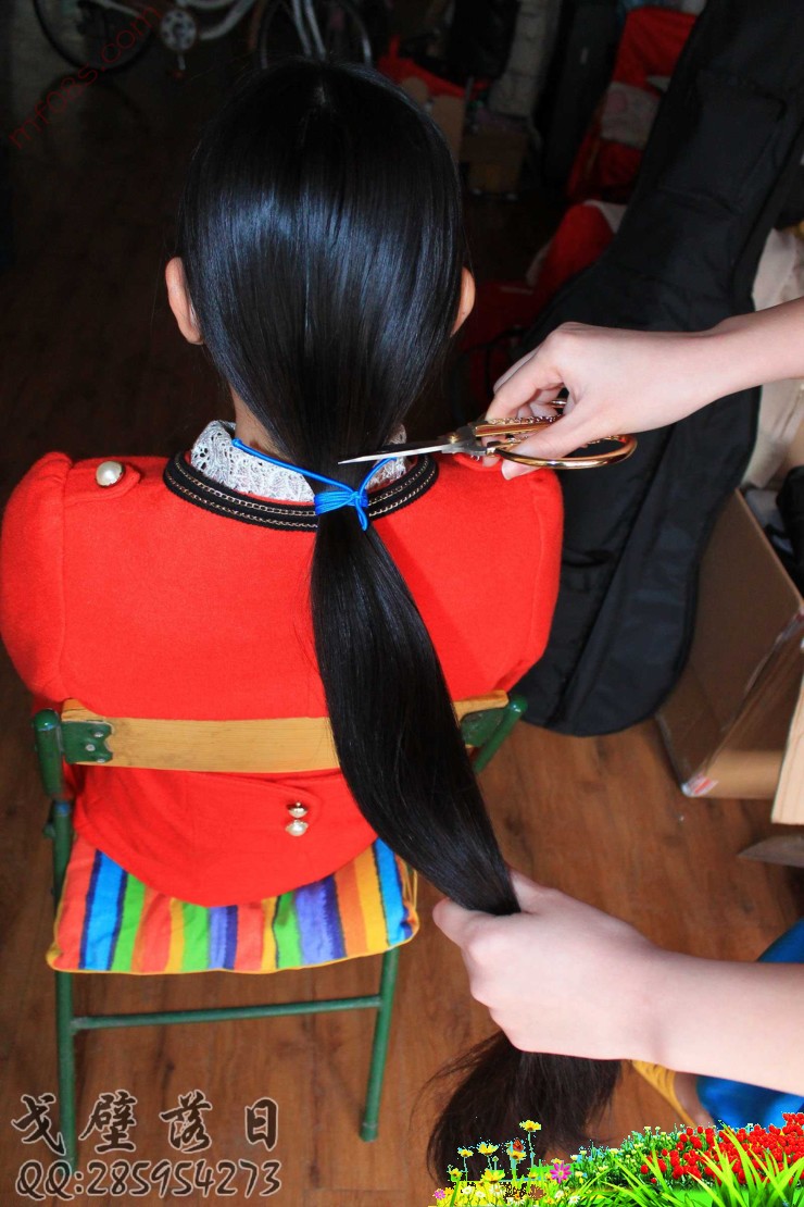 剪下腼腆斯文姑娘的柔顺长发-戈壁