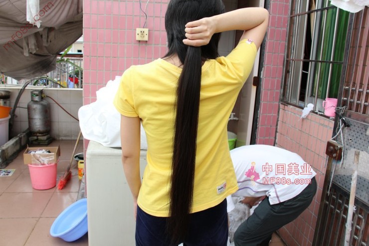 剪下黄衣女子的清秀长发-发之美129#(77)