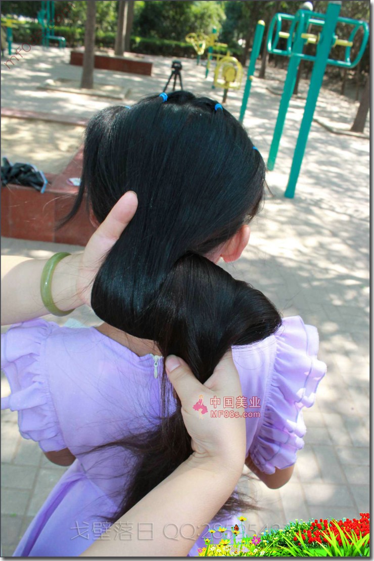 剪活泼好动小丫头纯天然秀发-戈壁