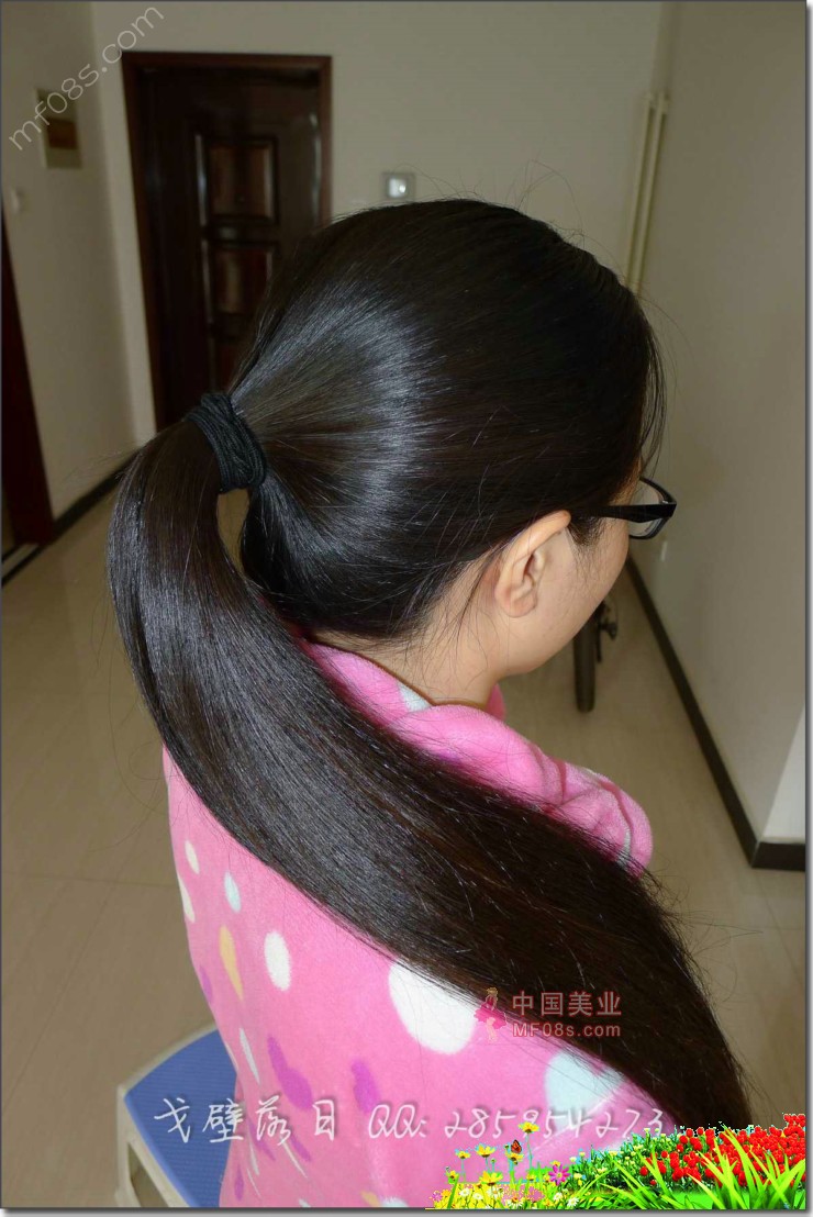 剪90后女孩超粗及膝长马尾-戈壁落日125#