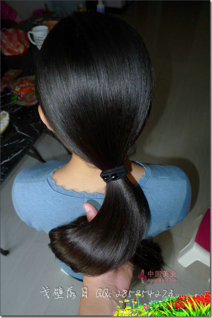 剪90后女孩超粗及膝长马尾-戈壁落日125#