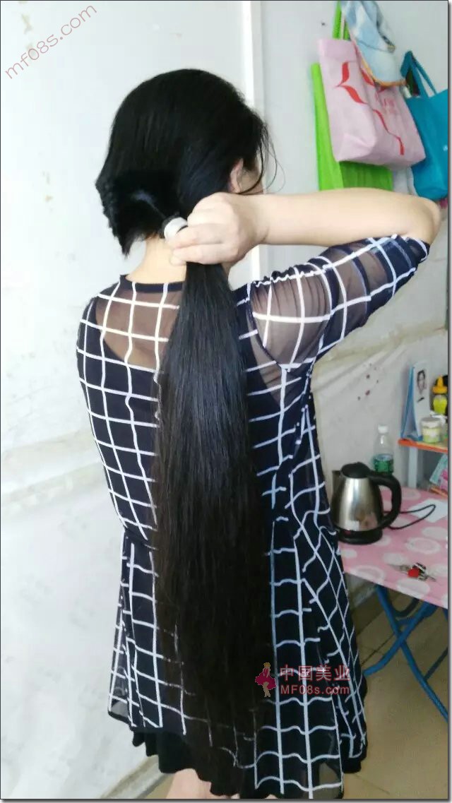 剪下90后前台妹子过腰秀发